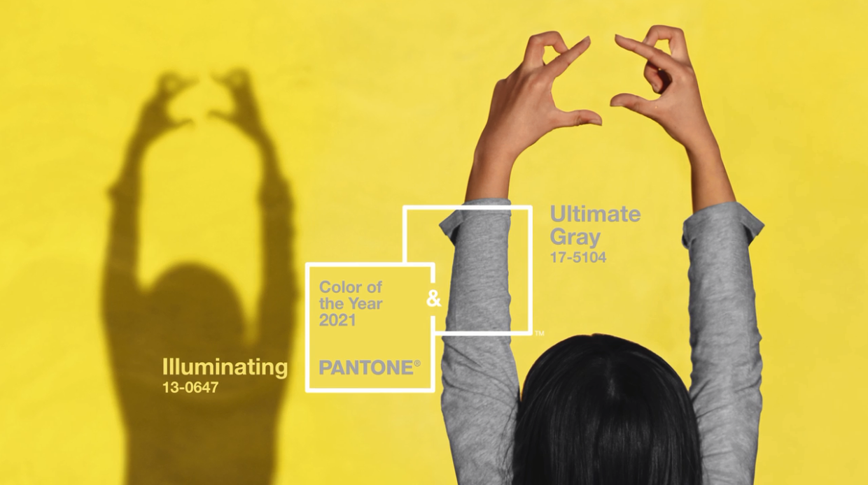 CINZA PANTONE 17-5104 Ultimate Gray + AMARELO PANTONE 13-0647 Illuminating. Uma